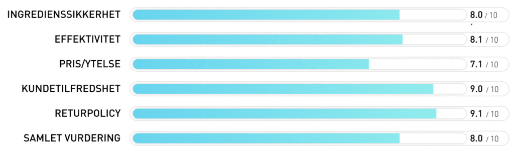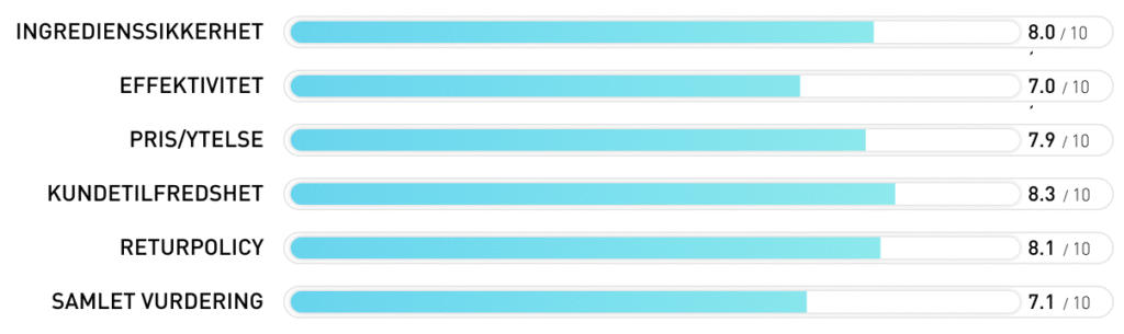 Til tross for disse lovende ingrediensene kommer produktet til kort i vår test, hovedsakelig fordi ingrediensene ikke er optimalt matchet. Dette påvirker produktets totale effektivitet og gjør at det ellers velutformede leddpreparatet havner på nest siste plass i vår rangering.