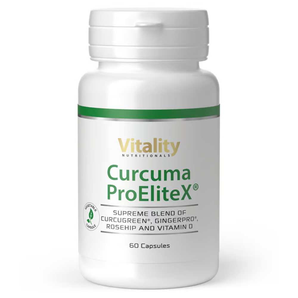 Curcuma ProEliteX® fra Vitality Nutritionals kommer på andreplass som et høykvalitets gurkemeietilskudd med virkelig imponerende biotilgjengelighet. Det patenterte Curcugreen™-ekstraktet har 700 % større potens enn standard gurkemeiepulver, og gurkemeie gir reell antioksidantbeskyttelse for leveren og støtter fettfordøyelsen. Formelen er ren, allergenfri og støttet av kliniske data.